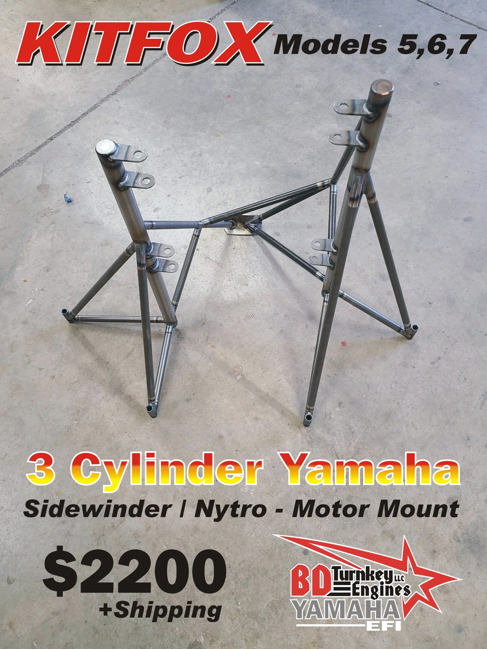 Kitfox 5-7 Sidewinder / Nytro Motor Mount: This 3 Cylinder Yamaha motor mount is constructed just like our Apex mounts and to the same standards. It locates the prop flange in the same exact location as the Apex. We have designed this motor mount to have very desirable CG with no need to add aft ballast. The cowl is currently the biggest challenge in this installation. There are a few options, but starting with the Lycoming Cowl & Firewall will be the easiest.